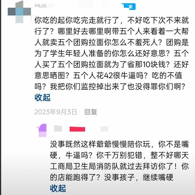 就是拉面店老板认为这件事影响到自己生意了,不可能道歉的,继续说了一些极端的话。